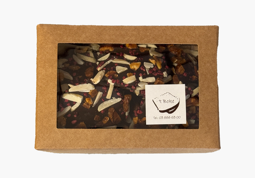 Pure chocolade met geroosterde nootjes en gedroogd fruit